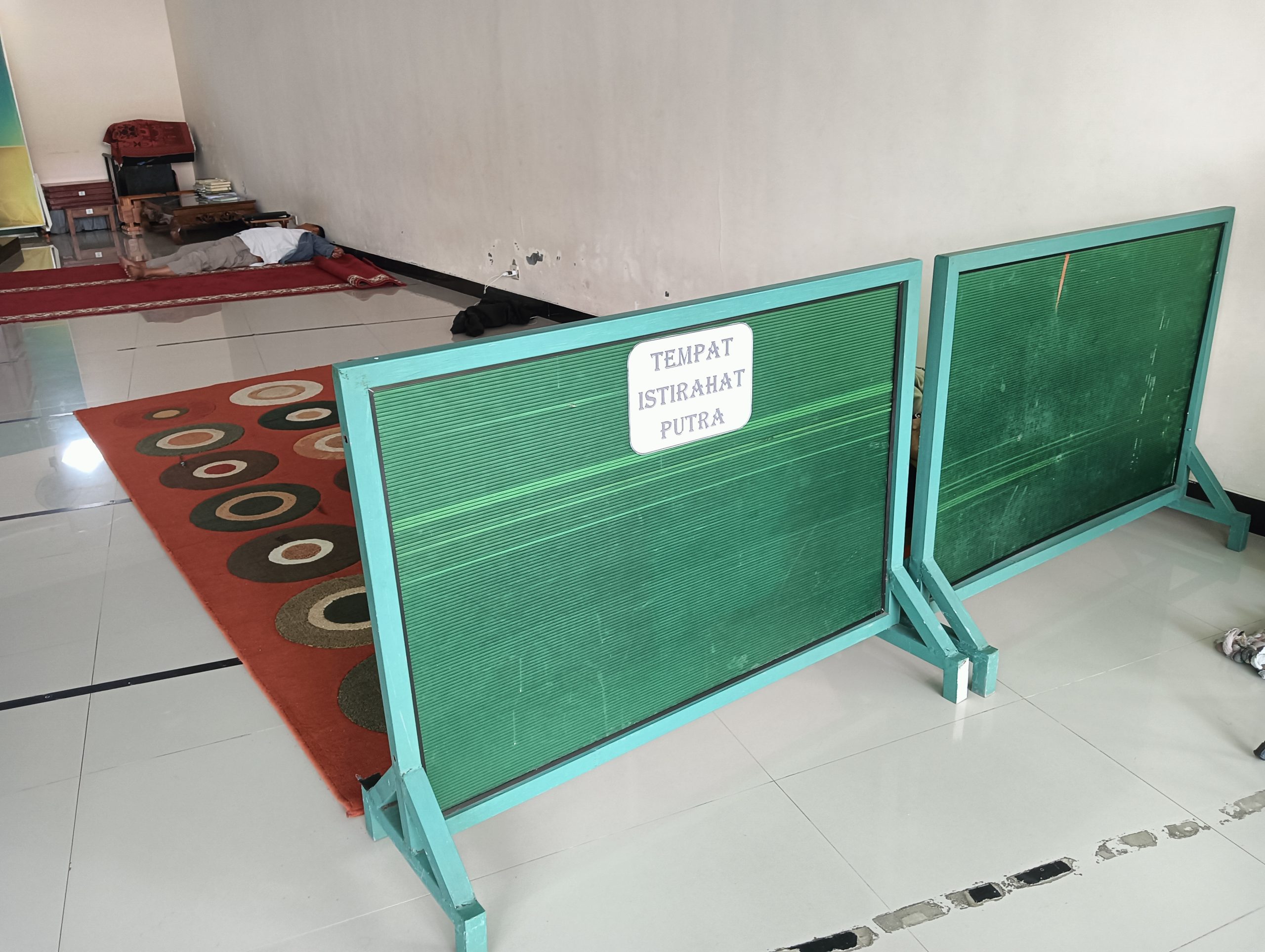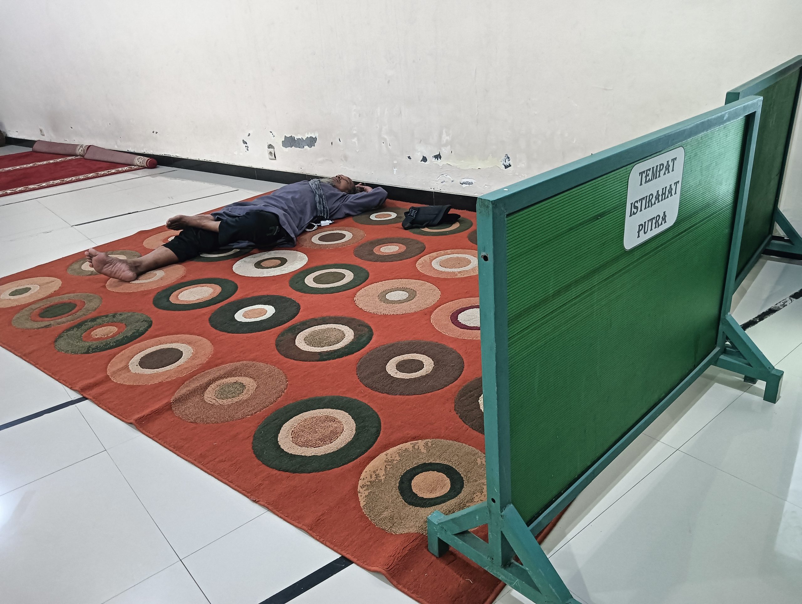 Terdapat ruang istirahat putra yang dapat menampung 10 musafir khusus putra, juga terdapat Bantal untuk tidur ketika musafir ingin bertistirahat.