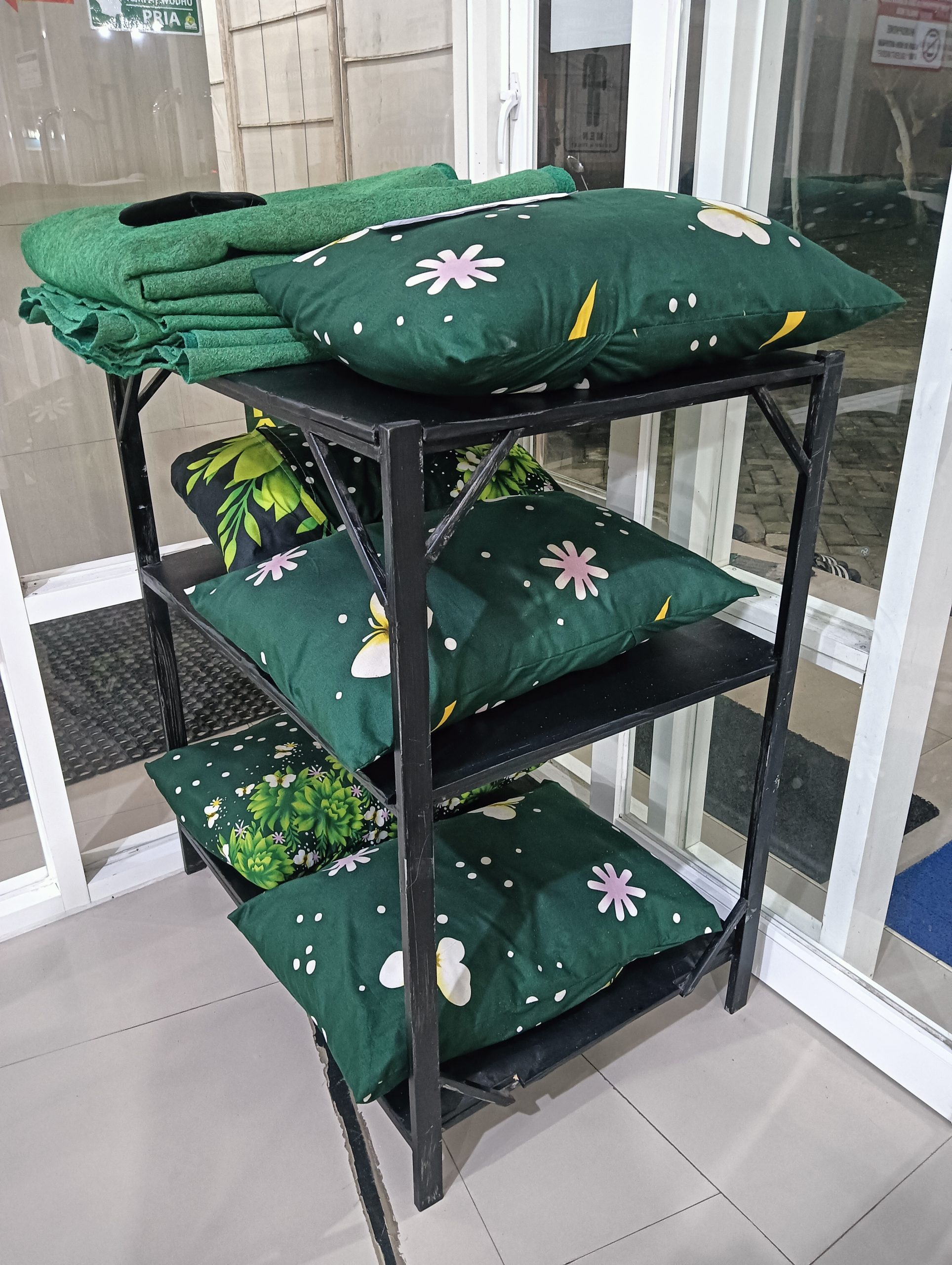 Terdapat 10 buah bantal dan 10 buah kasur siap digunakan bagi musafir yang ingin bermalam di Masjid.