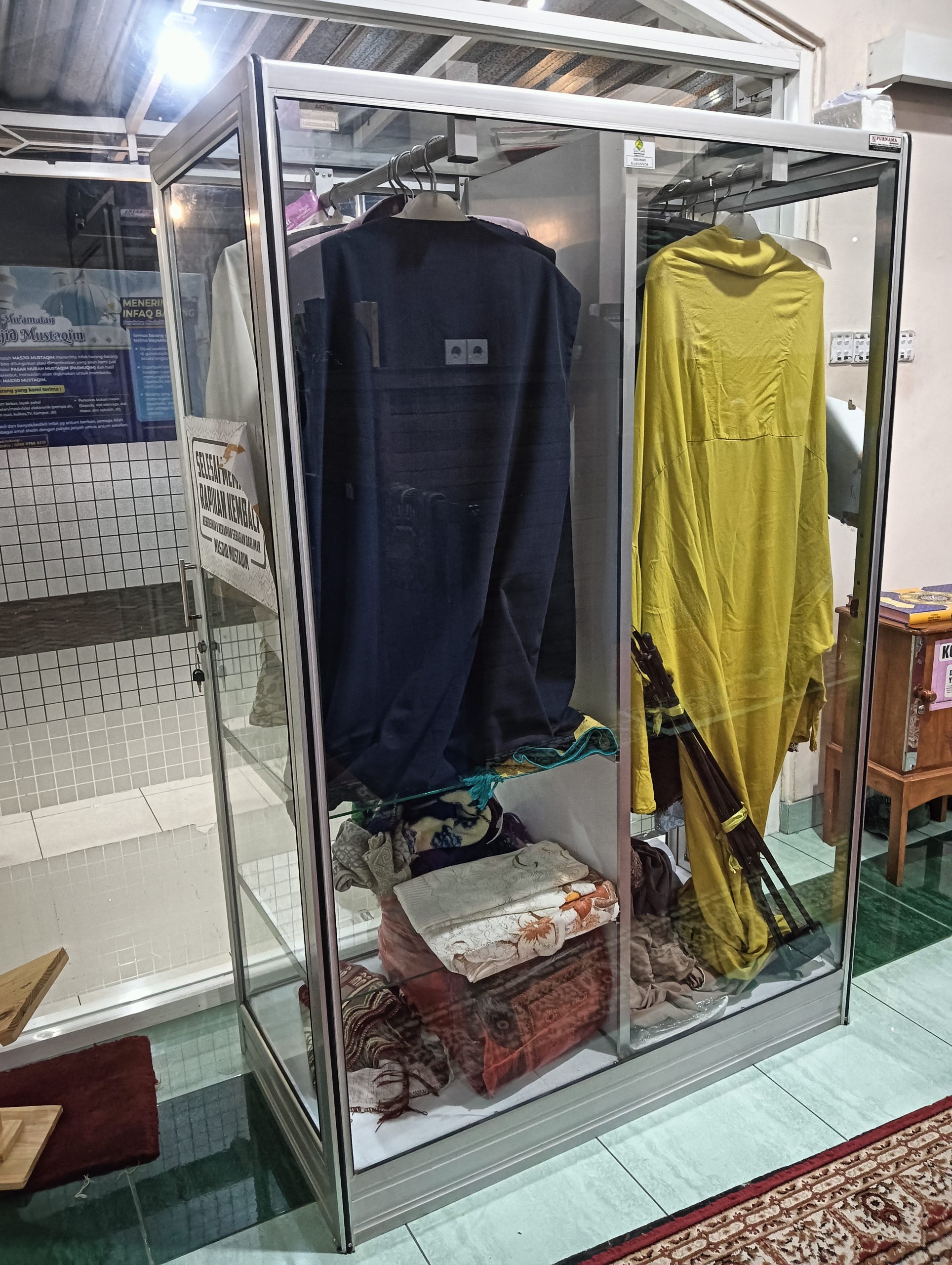 Terdapat Peralatan sholat untuk laki-laki maupun perempuan yang selalu wangi dan harum baunya yang cocok bagi musafir .